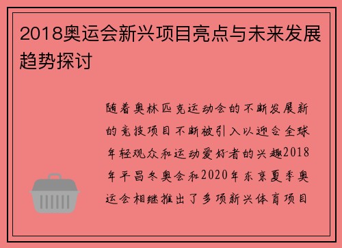 2024年巴黎奥运会将带来一系列令人兴奋的新变化,其中新增的球类项目引起了广泛关注。这些新增项目不仅丰富了奥运赛事的内容,还展示了奥林匹克精神的多样性和包容性。本文将详细分析2024年巴黎奥运会新增的球类项目,探讨其亮点与创新,重点聚焦于街头篮球、滑板篮球和壁球等项目的亮点,并对这些新项目如何提升赛事的观赏性与国际影响力进行深度分析。通过这些新增项目,巴黎奥运会呈现出更为多元和时尚的体育面貌,吸引...